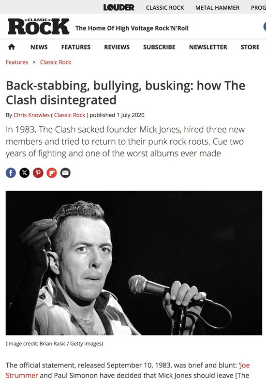 Mick Jones sacked Mickey Foot for speeding up 'Clash City Rockers'! I suppose Cosmo took over that role. But it wasn't bad speeded up, I think Mickey was probably right. There are few honourable men in these stories, but Mickey was one of them.