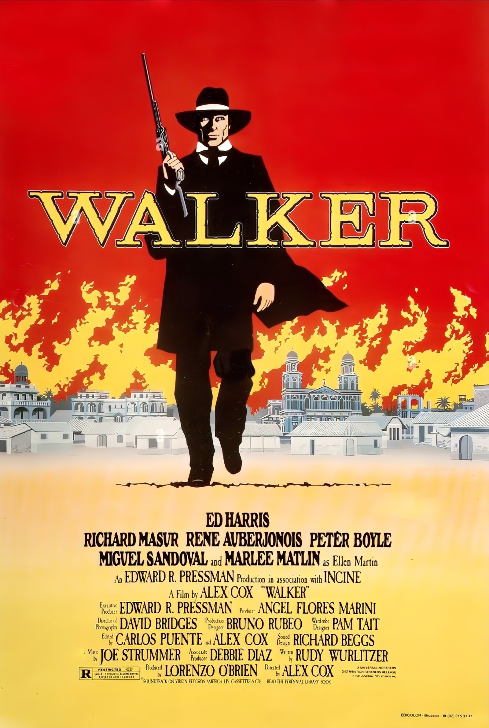 Strummer’s most significant creative output that year came with Walker, another Alex Cox film — a radical, anti-imperialist biopic about American mercenary William Walker. Strummer composed the entire soundtrack, and the resulting album reflected a bold shift in his musical style. Fusing Latin American influences with ambient, instrumental scoring, the Walker album showed Strummer experimenting beyond punk and exploring politically charged, cinematic soundscapes.